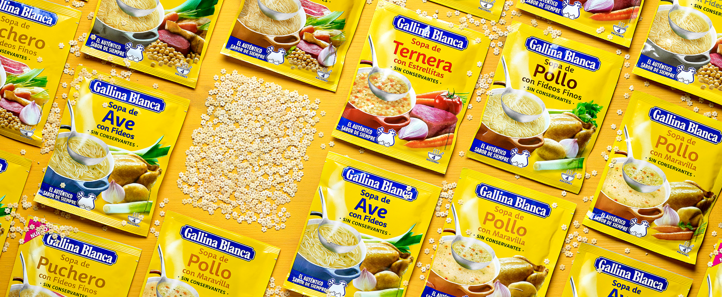 Este proyecto nace de la importancia de cocinar a fuego lento un producto que ha resultado ser la estrella de la casa: las sopas Gallina Blanca, un clásico convenience que está y ha estado en todas las casas. Es por eso que la marca se plantea un nuevo diseño de packaging, rediseñando todos sus packs de sopas destacando lo más importante: los ingredientes y el tiempo.
